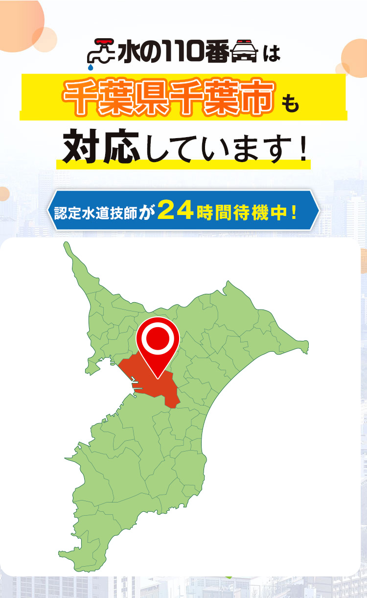 千葉市でトイレつまり・水漏れ、幕張から稲毛海岸まで、最短5分で駆けつける迅速対応。365日いつでも、千葉市のどこでも素早く対応し、水回りの問題を即解決します。