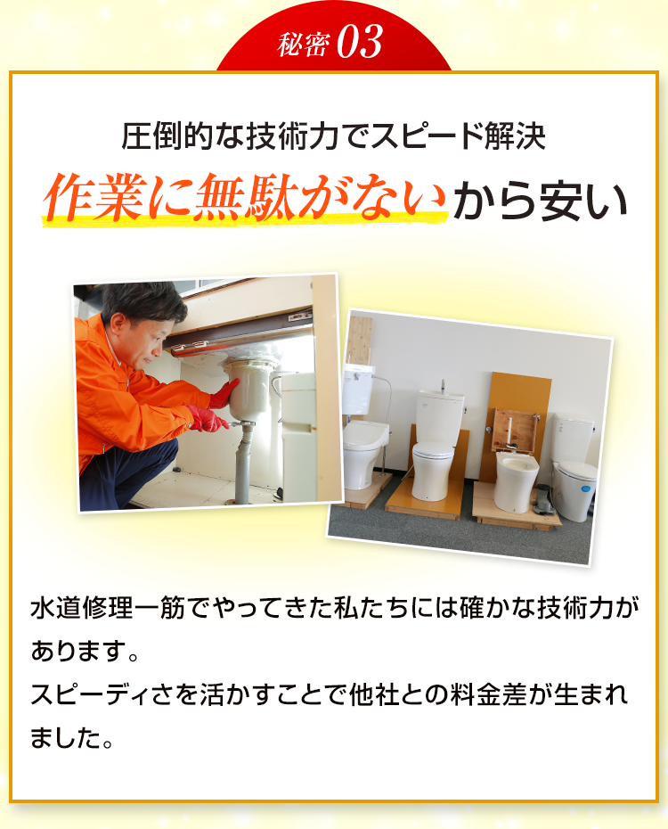 千葉市の水道修理・トイレの水漏れやつまりに対し、経済的な価格で迅速解決。コスト効率の高いサービス提供で、千葉市の皆様に最適な価格を実現します。